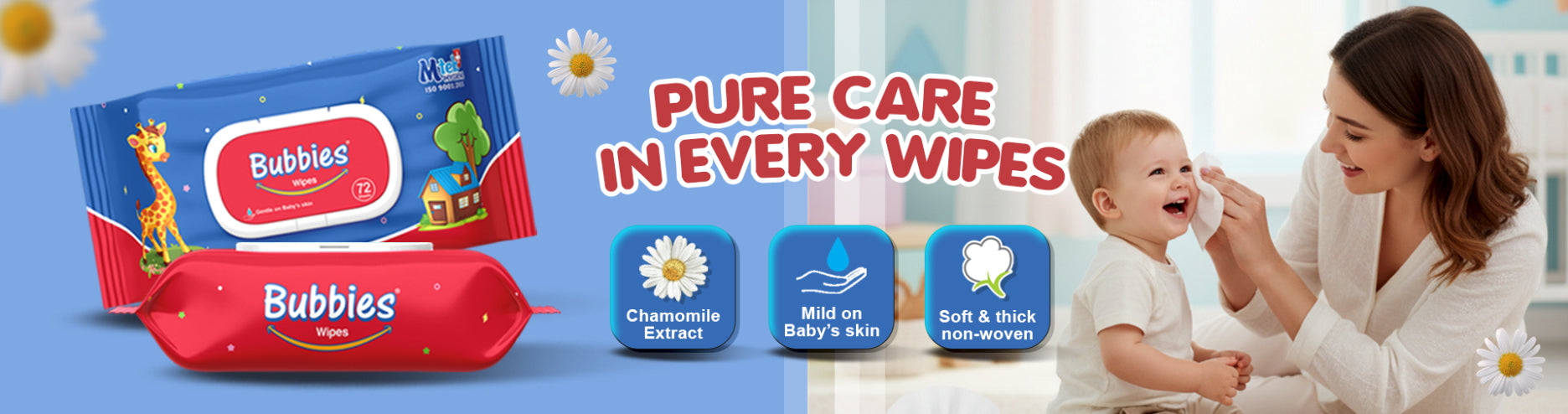 Bubbies Baby Wipes Pack of 12